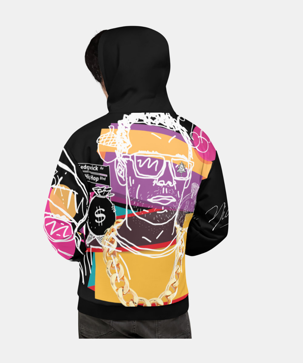 • Double-lined hood with design on both sides